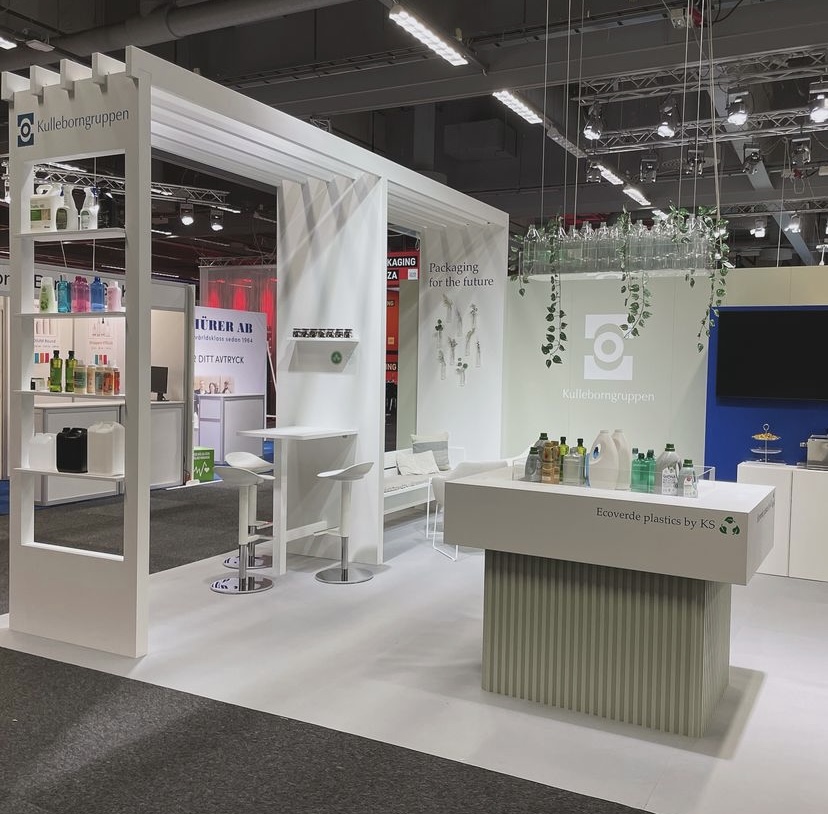 Idag ligger ett stort fokus på förpackningsindustrins klimat- och miljöpåverkan. Vi ville skapa en monter där den ”gröna” tanken satte stor prägel samtidigt som det var viktigt att ge både produkter och de sociala ytorna bra utrymmen. Det blev en ljus och positiv monter som fick mycket uppmärksamhet. Ett jättekul projekt som vi ser fram emot att få genomföra (och återanvända!) igen när det är dags för Scanpack 2027.